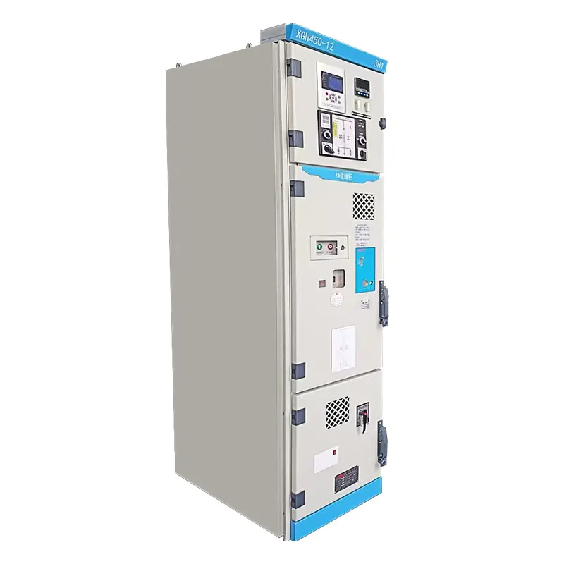 XGN450-12 Комплектное распределительное устройство (КРУ) ячеечного типа, стационарного исполнения, в металлической оболочке(сокращенно «КРУ XGN450») представляет собой передовое высоковольтное распределительное устройство для внутренней установки с превосходными характеристиками.